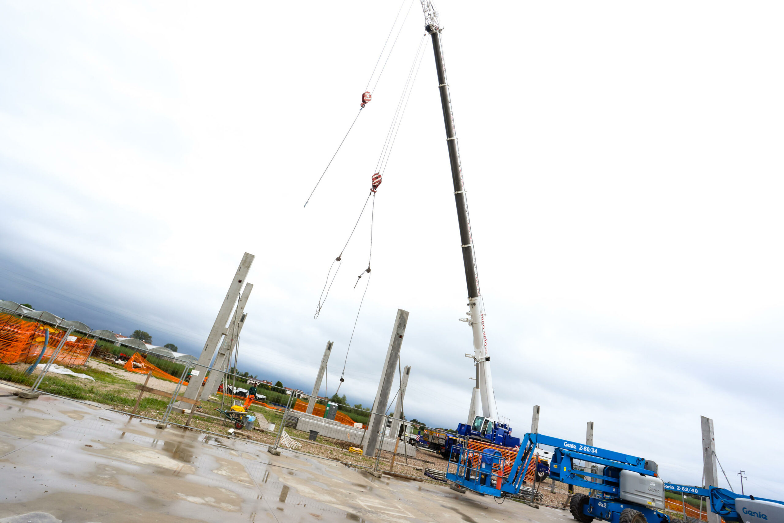 Il cantiere ha interessato la realizzazione di un sistema fondazionale completo a supporto di una struttura prefabbricata di medie dimensioni, con una superficie interna di circa 840 mq e aree esterne pavimentate per ulteriori 1.200 mq circa.