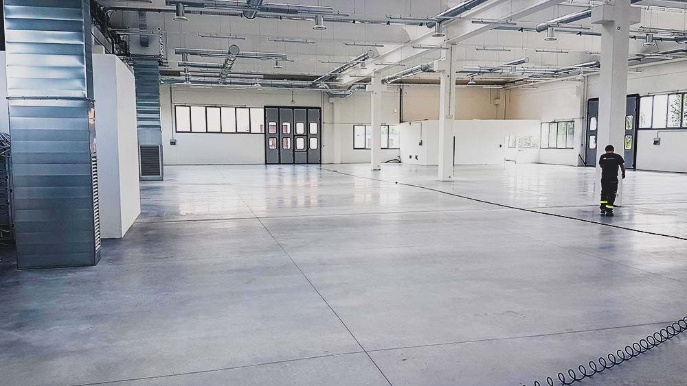 I piazzali di sottofondo in ghiaia sono stati realizzati con la posa in opera di un geotessuto e con la stesura di frantumato di roccia come strato portante e uno strato a finire superiore in stabilizzato di roccia, sul quale sono stati realizzati il pavimento industriale di spessore 20 cm, armato con doppia rete elettrosaldata e lisciato al quarzo, e la pavimentazione esterna in asfalto, composta da uno strato di binder di 7 cm e da un tappetino di usura finale di 3 cm.