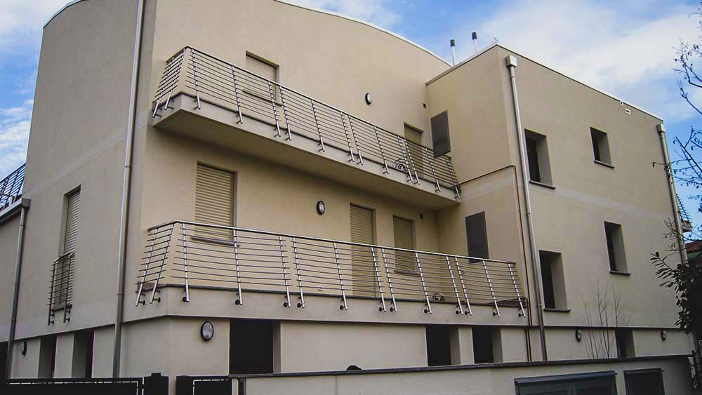 È stato installato l’ascensore, realizzati tutti i parapetti esterni in alluminio, realizzato il cappotto esterno a isolamento delle pareti, installati i serramenti in legno completi di zanzariera e realizzate tutte le linee esterne e le finiture dell’edificio, come marciapiedi recinzioni, cancello carraio motorizzato, ecc..